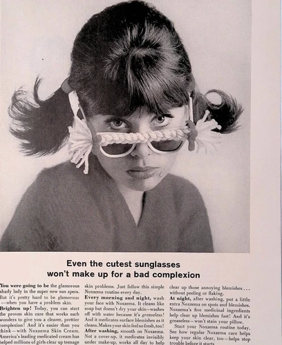 1964 Noxzema Skin Cream Cute Sunglasses Vintage Print Ad American Girl July