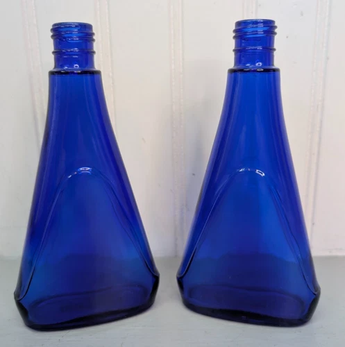 Vintage Noxzema Bottle Cobalt Blue Apothecary Cosmetic Vanity Empty 7" Tall 2pcs