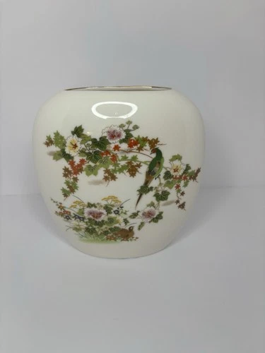 Japanese Porcelain Oblong Vase 6”Shaddy Mino China JGI Pheasant Flower Gold Rim