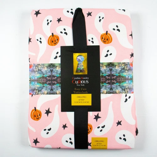 Cynthia Rowley Pink Ghost Halloween Fabric Tablecloth Pinkoween Oblong 60X84 New