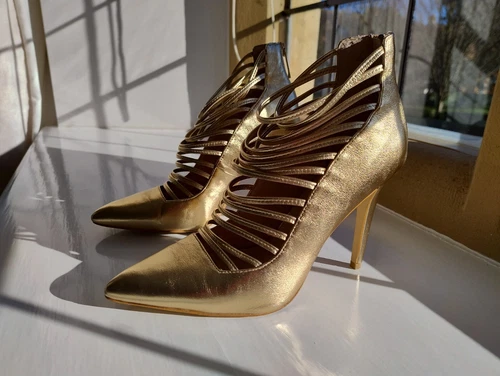 Stunning Caged Heels In Gold by Aldo 5.5/38.5 Special Occasion/Party shoes