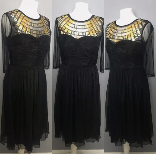 M&S Twiggy Black Embellished Sequins Ruched Lined Dress. Party Occasion BNWT