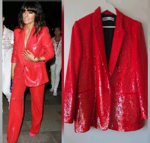 Zara Red Sequin Embellished Blazer Jacket M Medium 10 12 Party Occasion
