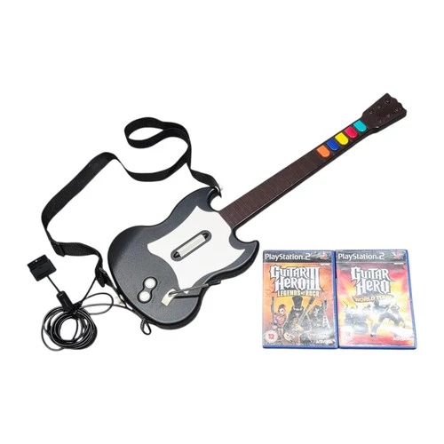 Guitar Hero PS2 Controller Bundle - Wired Red Octane Guitar With 2 Games Tested