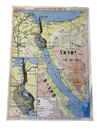 1973 Yom Kippur War Israel-Egypt Ceasefire Map - Newspaper Insert Oct 23 Rare