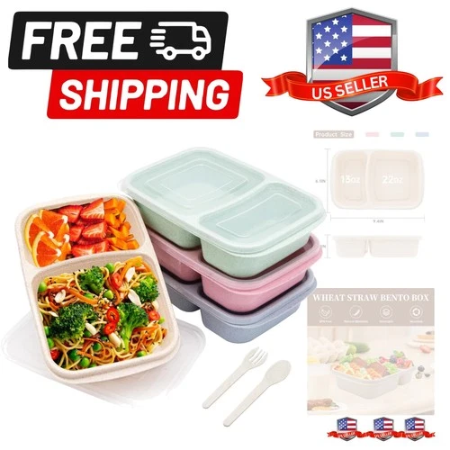 4 pack Bento Lunch Box, 2 Compartments Meal-Prep Containers with Lids, Microw...