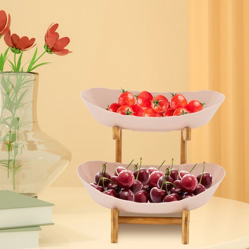 2-Tier Beige Fruit Bowl Non-slip Fruit Basket Stand Odorless Fruit Serving Tray