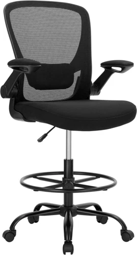 SONGMICS Drafting Chair with Flip-Up Armrests, Mesh Office Chair, Ergonomic Pain
