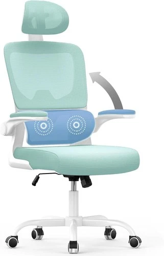 Ergonomic Office Chair Desk Flip-up Armrests Lumbar Support Headrest Green