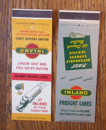INLAND FREIGHT TRUCK LINES MATCHBOOK COVERS: OGDEN RENO STOCKTON SF OAKLAND SLC