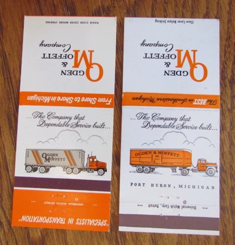 OGDEN & MOFFETT TRUCKING MATCHBOOK MATCHCOVERS: PORT HURON DETROIT MICHIGAN -B27