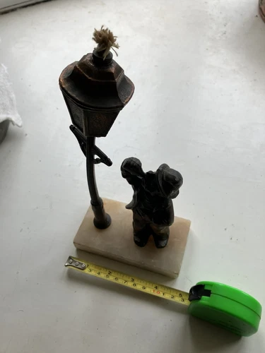 Vintage Drunk Oil Lamp Lamp Post Bronze Colour Brass Marble Base Heavy pem2