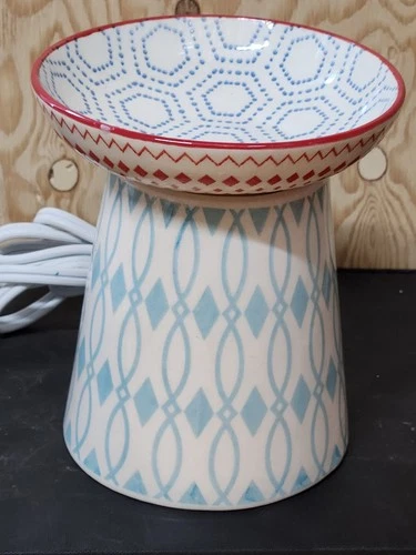 Scentsy Electric Oil/Wax Warmer Blue Red Ceramic Geometric Glossy Plug-In Bowl