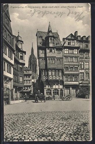 Old Frankfurt, Römerberg, view of the old market and cathedral, postcard 1910