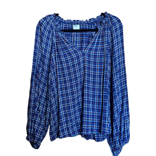 Old Navy Tunic Top Womens XL Multicolor Plaid Split Neck Stretch Blouse