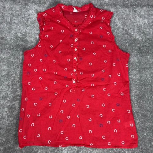 Old Navy Blouse Women’s Large Red Sleeveless Ruffled Horseshoe Lightweight Rodeo