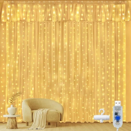 Ollny Curtain Lights Indoor Outdoor, 300LED 3mx3m Christmas Window Fairy Lights,