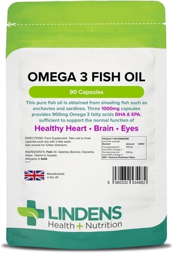 Omega 3 Fish Oil 3000mg 90 Capsules UK Made Supplement Heart, Brain & Eyes