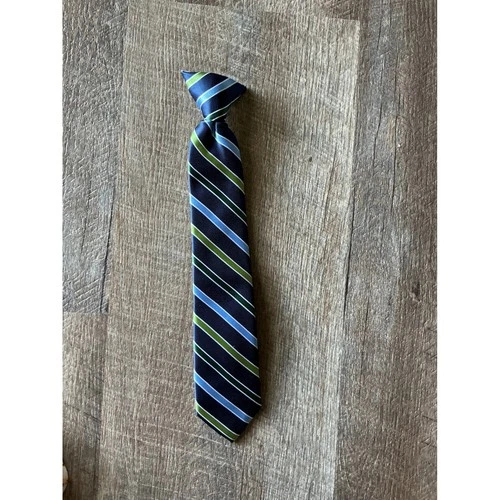 Chaps Boys Navy Blue Green Striped Clip-On Necktie Formal School Uniform Tie