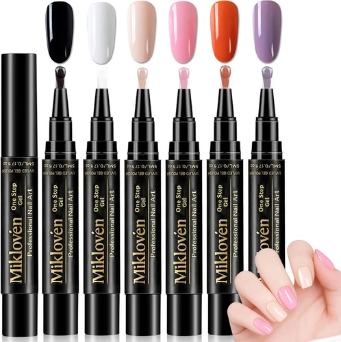 One Step 3-In-1 Gel Nail Polish Pen Set, Quick-Dry Soak-Off Nail Art Pens, 6 Col