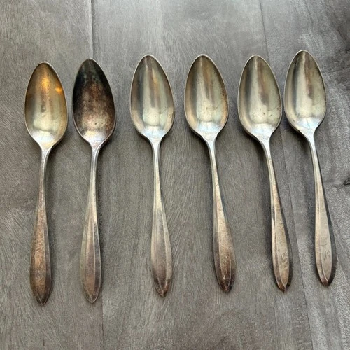 6 Vintage Community Plate Silverplate Teaspoons Monogram Art Deco 6"