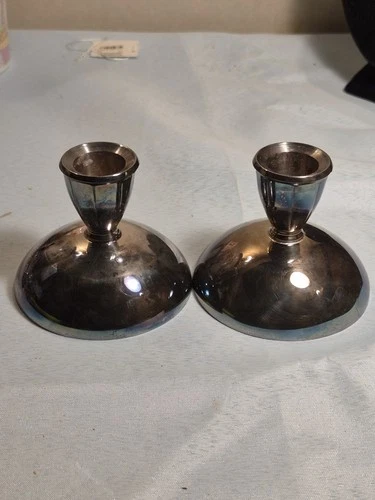 Pair Of Oneida Silversmiths Silver Plated Candle Holder 2.75"