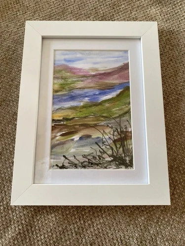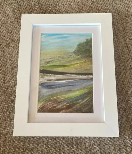 Original Painting, Abstract Riverbank Landscape Signed Mounted & Framed OOAK Art