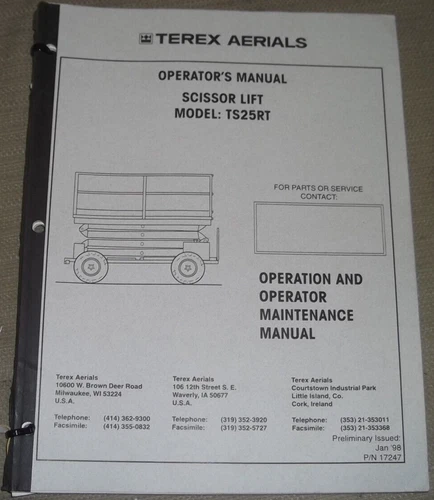 TEREX TS25RT SCISSOR LIFT OPERATOR OPERATION & MAINTENANCE MANUAL BOOK
