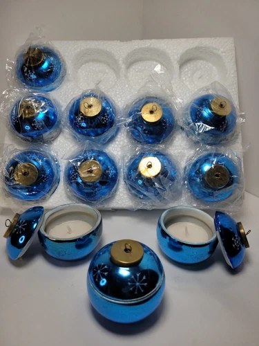 Oriental Trading Co. Ceramic Blue Ball Christmas Ornaments Tealight Box Trinkets