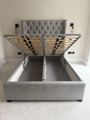 John Lewis Dark Grey/charcoal Velvet Winged King Size Ottoman Gas Lift Bed