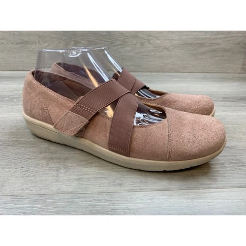 Vionic Shelby Women's Suede Crisscross Strap Loafers Dusty Rose Pink Flats 9.5