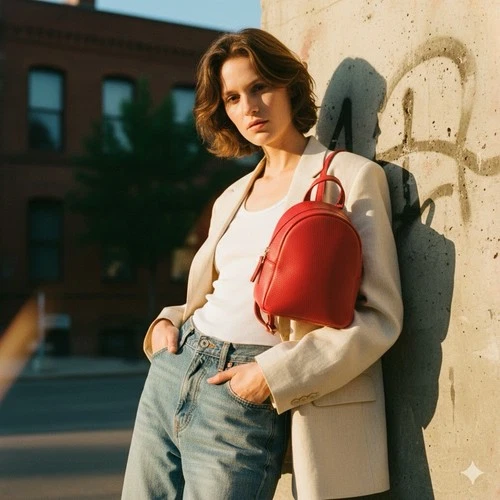 Osgoode Marley Organizer Backpack Soft Leather Bag Red