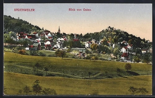 Badenweiler, view from the east with ruin, postcard 1943