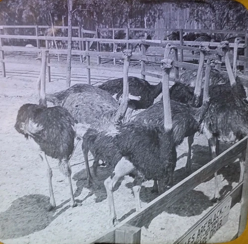 Ostrich Farm in California, c1920's Magic Lantern Glass Slide, Keystone View