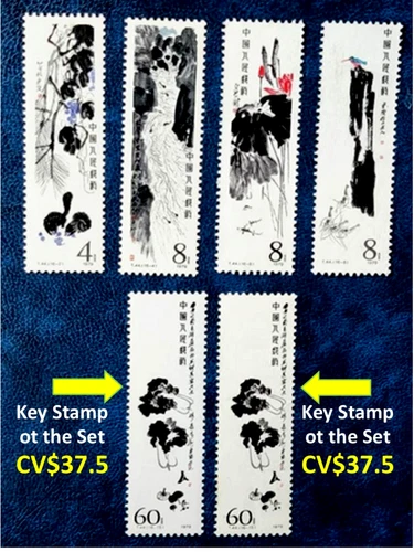 2 x Key 60f & 4 Other UNUSED P R China 1980 T44 Qi Baishi Paintings MNH CV$83.5