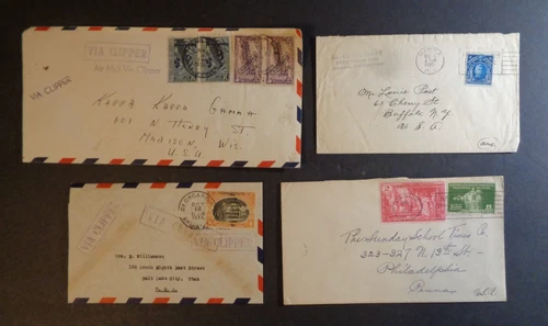 2 PHILIPPINES via CLIPPER STAMPED COVERS TO USA, PLUS 2 OTHER EARLY COVERS. 4QTY