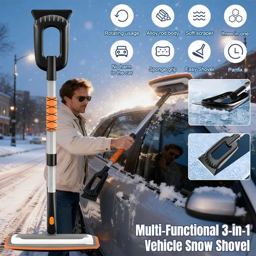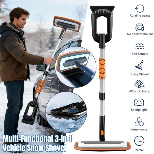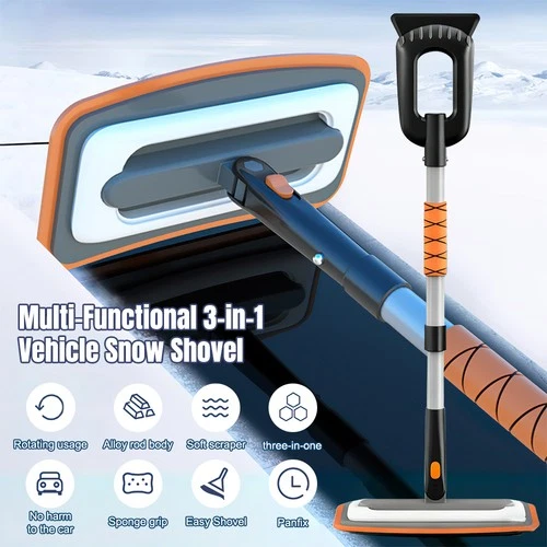 3 IN 1 Extendable Ice Snow Scraper Truck Brush Windows Cleaning Tools Shovel Kit