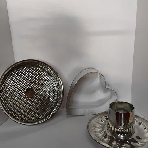 4 Wilton (and other) Aluminum Round Cake Pans 2" Depth + Acrylic Cake Stand