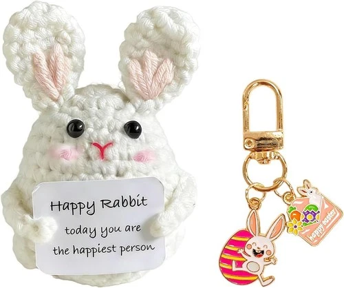 Easter Bunny Keyring Decoration Gift Set White Crochet Handmade