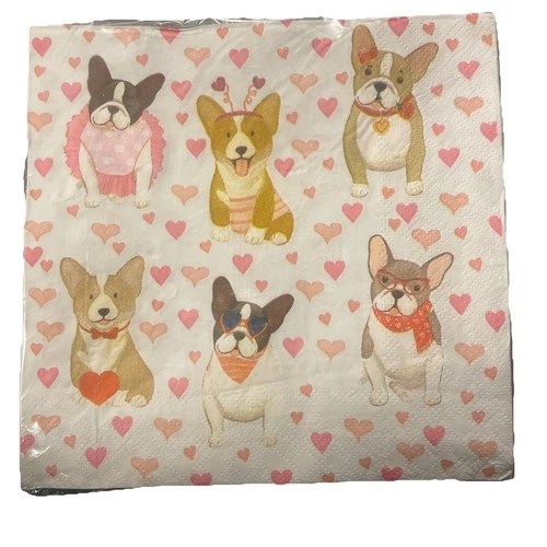 40 Luncheon NAPKINS WITH CORGI & Other 3 Ply MOTIF Valentine’s Day Hearts Love