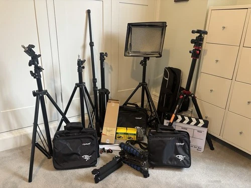 Lighting Set/Filming 5 Tripods (3 w/ Aputure Lights). 1 monopod. 2 Other Tripods