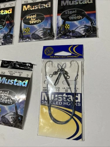 MUSTAD STEEL WIRE LEADER WITH 1/0 HOOK 60 LB TEST & 4 Other Packs Of Steel Seepi