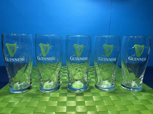 Guinness Green Harp 1 Side Embossed Harp Other Side Glasses Hold 400ml Set of 5