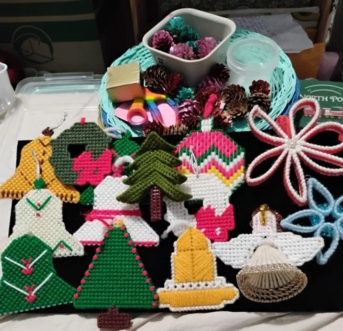 Lot of 14 Needlepoint, Fabric, And Other Ornaments Handmade
