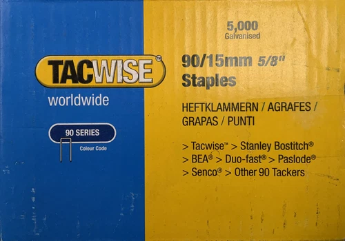 Tacwise 90 SERIES NARROW CROWN STAPLES 15mm BOX 5,000. FITS OTHER TOOLS