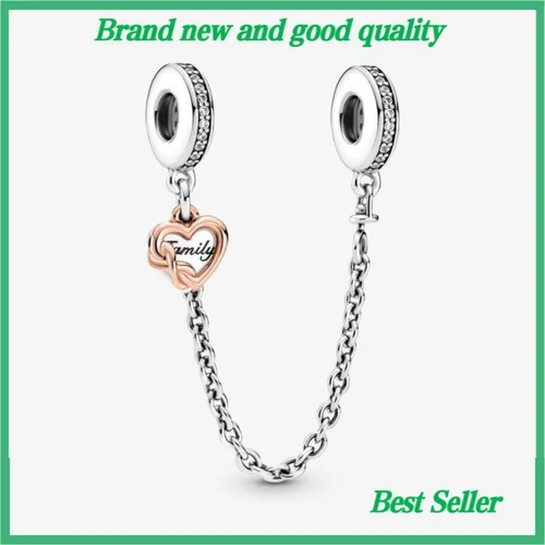 S925 Silver Plated Family Heart Safety Chain Charm for Bracelet and Necklace Q5