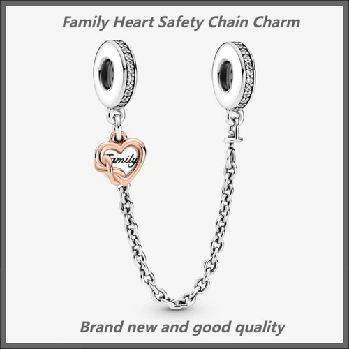 S925 Silver Plated Family Heart Safety Chain Charm for Bracelet and Necklace UK