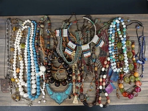 Mostly Vintage Necklace & Other Jewelry Lot Beads Native Stones Etc