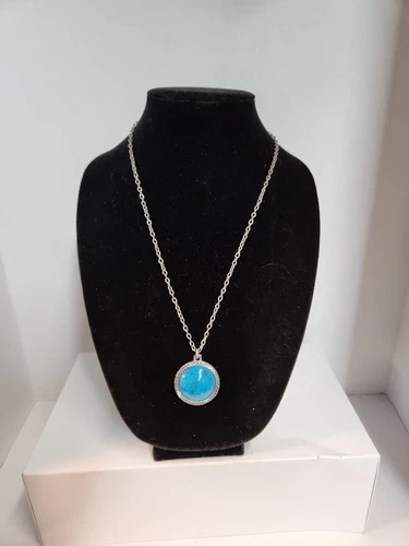 Unbrand Blue Marble Pend 1 Side/Indian Head Other On A Silver Tone 24" Chain
