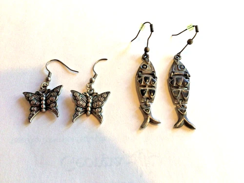 EARRINGS Lot 2 one tiny Butterfly, other articulated FISH ,dangle both pierced